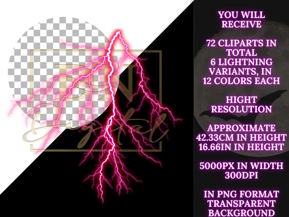 Illuminate your designs with our Lightning Overlays Clipart Collection!⚡🌩️ With a total of 72 cliparts featuring 6 lightning variants in 12 colors each, you'll have endless possibilities to add dynamic and dramatic effects to your projects. Enhance your visuals with high-quality lightning overlays that are easy to use and perfect for both digital and print creations.