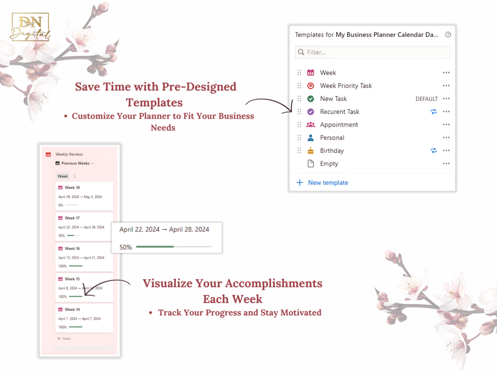 With synced task views, premade templates, and a beginner-friendly design, this planner simplifies the planning process, helping you stay focused and on track. Say goodbye to overwhelm and hello to clarity with our intuitive layout and visual progress tracking.