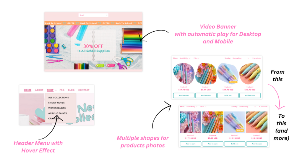 • Clickable Banners that look Beautiful and Profesional on All Devices (You can upload different Banners for Desktop and Mobile)