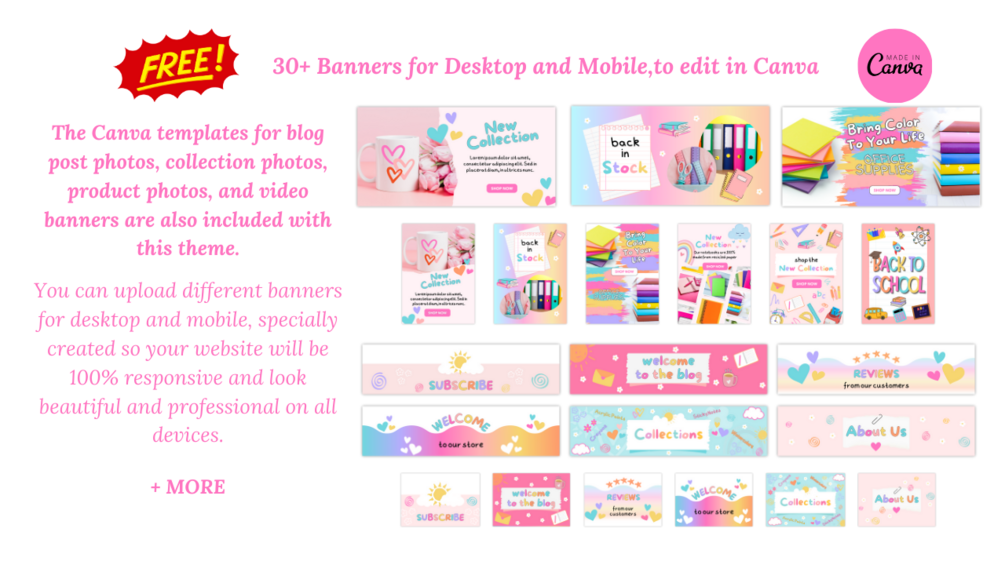 3. Banners and photo templates - editable in free Canva (PDF with links to the Canva Templates to edit your Shopify Banners).